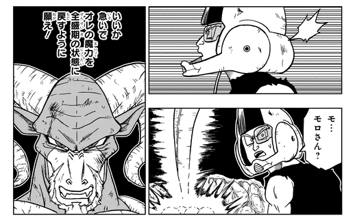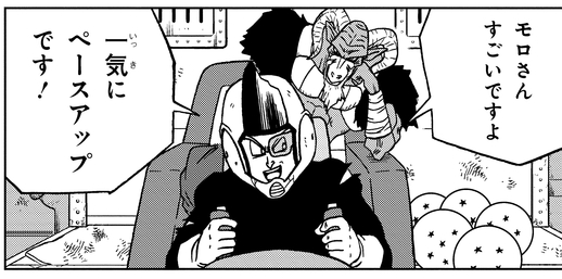 Gracias a las impresionantes habilidades de Moro, logran reunir seis Dragon Balls en un abrir y cerrar de ojos. Luego, mientras Moro mantiene ocupado al Great Supreme Kai en la batalla, consigue la séptima Dragon Ball.