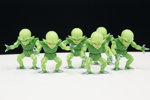 Mirando el producto terminado, creo que probablemente sea justo decir que hasta ahora en la Era Reiwa, ¡somos los que nos hemos tomado al Saibaimen más en serio! Los Saibaimen son perfectos para exhibirlos en grupos grandes, por lo que para alentar a los fanáticos a esperar sacar duplicados, los diseñamos para que se puedan colocar fácilmente, con brazos, cabezas y muñecas ajustables, ¡para que pueda personalizar su propio enjambre de Saibaimen! Espero que los fans le den a cada uno un poco de personalidad individual y los muestre con orgullo junto a Vegeta y Nappa.
