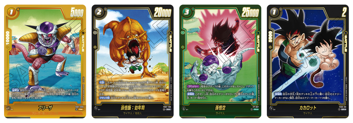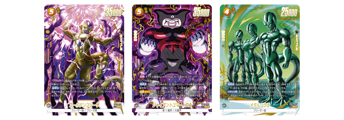 Las cartas SR Alt-Art "Amarillas" son "Golden Frieza", "Gomah Gigante: DA" y "Meta-Cooler". ¡Gomah Gigante, quien se presentó ante Goku y los demás en el clímax de Dragon Ball DAIMA, finalmente debuta en el Mundo de Fusion !