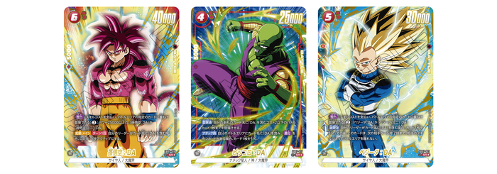 Las cartas SR Alt-Art "Rojas" son tres personajes que jugaron un papel importante en Dragon Ball DAIMA: "Son Goku: DA", "Piccolo: DA" y "Vegeta: DA". Tanto "Son Goku: DA" como "Vegeta: DA" cuentan con la nueva habilidad "Evolucionar", que permite jugar sobre cartas específicas por un bajo coste de habilidad.