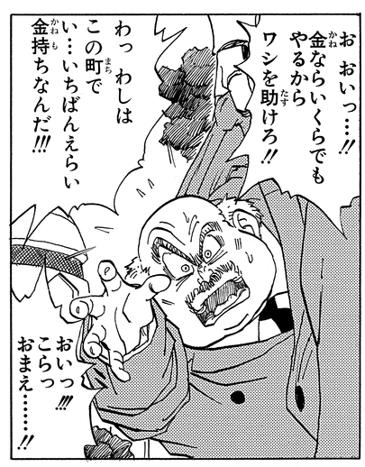 Él es el ciudadano más rico de Ginger Town cuando Cell comienza su ataque.