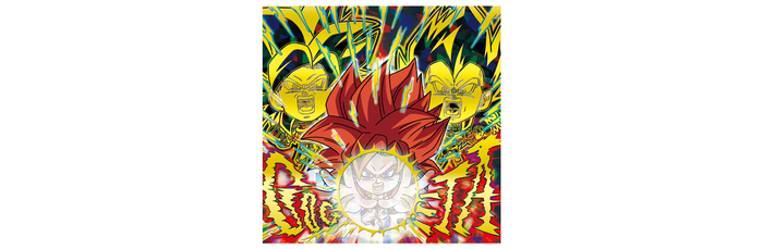 Las pegatinas "Cinematic God Rare" son realmente un tesoro, ya que representan el inolvidable enfrentamiento entre Majin Buu y Goku. Con efectos holográficos, recrean el emocionante enfrentamiento final del arco de Majin Buu en una gloriosa pegatina.