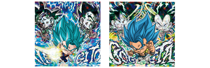 ¡Los dos guerreros formados a partir del poder combinado de Goku y Vegeta están aquí como impresionantes pegatinas "Union Rare EX"!