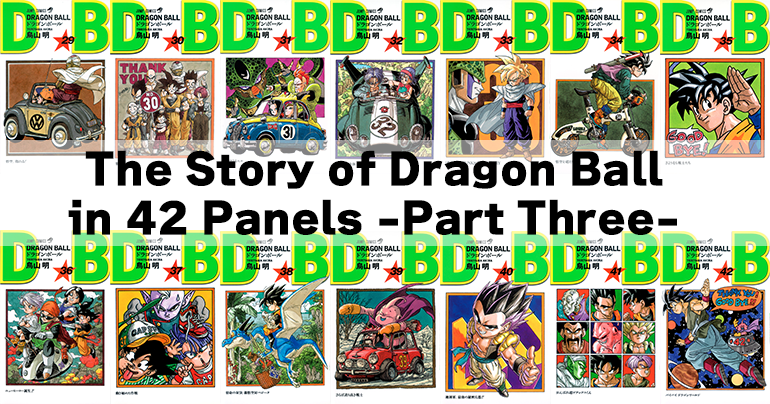 Esta serie de artículos comenzó el 20 de noviembre coincidiendo con el aniversario de la primera publicación de Dragon Ball. Aquí, repasamos la historia de Goku y sus amigos seleccionando una viñeta de cada uno de los 42 volúmenes de Dragon Ball de Jump Comics . En la primera parte, cubrimos desde que Goku se embarcó en su gran aventura junto a su nueva amiga Bulma hasta su victoria sobre el Great Demon King Piccolo, mientras que en la segunda parte, nos centramos en la victoria del Goku, ya adulto, en el 23.º Tenkaichi Budokai hasta su victoria sobre Frieza en el Planet Namek.