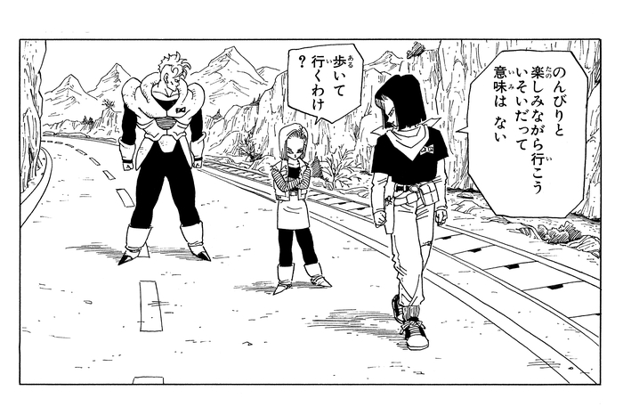 En su camino a buscar a Goku, el Android 17 curiosamente elige una ruta menos eficiente. Es una escena que muestra un lado sorprendentemente humano del Android 17, algo que el Android 18 comenta en un panel posterior. Para contrarrestar la amenaza androide, Piccolo decide fusionarse con Kami. Sin embargo, sin que nuestros héroes lo sepan, un ser monstruoso del futuro ha llegado y comienza a despertar.