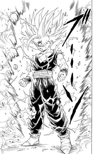 Con su verdadero poder desatado, Gohan despierta en su forma Super Saiyan 2. Al ver a un guerrero que supera incluso la fuerza de Goku, Cell se horroriza y comenta: «Ha... cambiado...». Gohan primero elimina a los Cell Jr. que inquietaban a sus compañeros antes de enfrentarse a Cell una vez más.