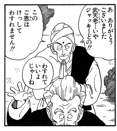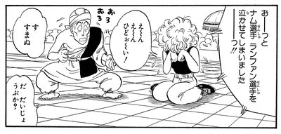 Después de su derrota, Namu pensó que tendría que regresar a su aldea con las manos vacías, ¡pero Kamesennin (disfrazado de Jackie Chun en ese momento) pudo sentir la difícil situación de Namu e intervino! Le dio una Hoipoi Capsule que podría usarse para reducir una gran cantidad de agua de pozo libre al tamaño de un Senzu Bean para llevar a casa, ¡no se requieren "vasijas desbordantes" pesadas!