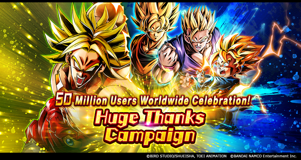 En una muestra de gratitud, están llevando a cabo una campaña de celebración masiva que incluye muchos eventos especiales, como "¡LL Fierce Battle! ¡Terminemos esto! ¡Family Kamehameha!" ¡donde puedes obtener un poderoso personaje LEGENDS LIMITED!