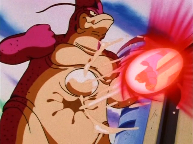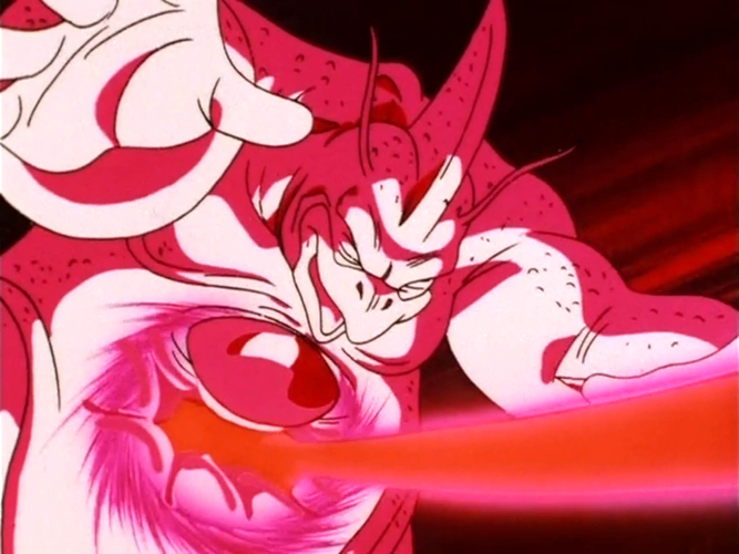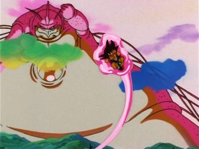 Sin embargo, esto no afecta a Goku, quien se transformó en Super Saiyan 4. Con Goku desatando un Kamehameha x10, parece que Wu-Shinron ha perdido el control. Sin embargo, el ataque simplemente rebota en su cuerpo blando y viscoso.