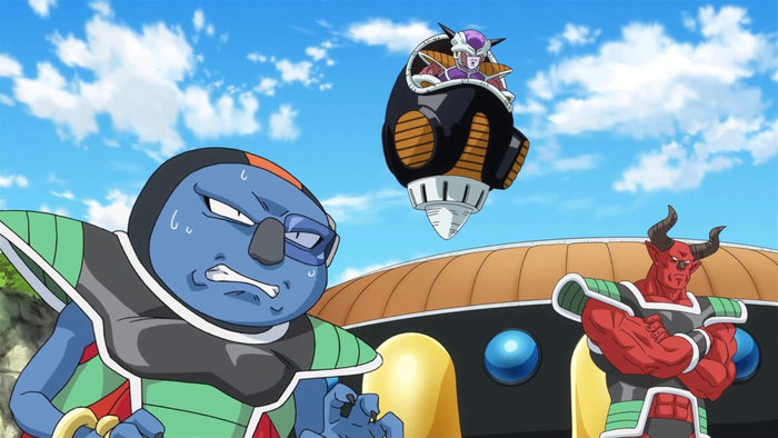 Aunque Frieza elogia su "puntería ejemplar", la ráfaga de energía que Frieza dispara a Vegeta es desviada, atrapando a Sorbet en el fuego cruzado.