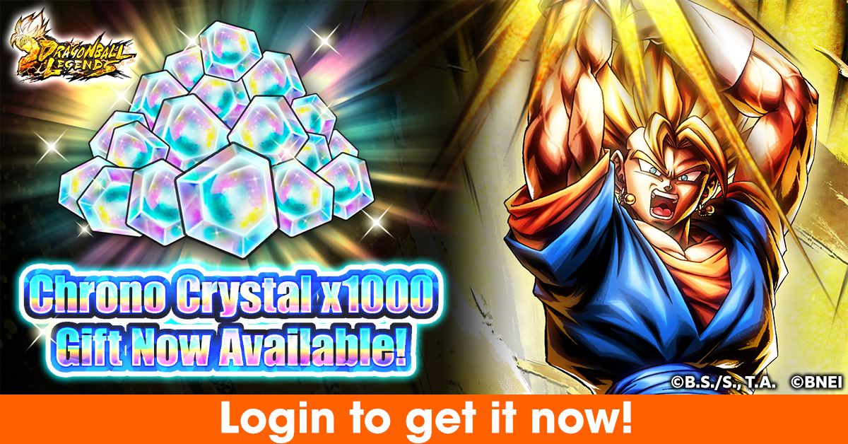 En honor a la nueva rareza LEYENDA que se agregó al juego,¡Estamos ofreciendo un regalo de 1000 Chrono Crystal que puedes obtener simplemente iniciando sesión!