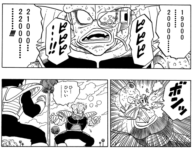 Kiwi luego confronta a Vegeta, quien lo esperaba, y afirma con arrogancia: "¡Mi Power Level es muy superior al tuyo!". Sin embargo, Vegeta había aprendido a controlar su Power Level gracias a su experiencia cercana a la muerte en la Tierra. Aumenta rápidamente su Power Level, lo que hace que el Scouter de Kiwi no pueda leerlo y explote.