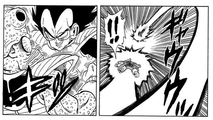 Kiwi exclama triunfante: "¡Ja, ja, ja! ¡Más vale mentiroso que tonto!", pero Vegeta evadió su ataque sin esfuerzo. Kiwi, horrorizado, intenta huir, pero Vegeta lo persigue rápidamente y, tras lanzarlo por los aires de un solo golpe devastador, lo hace añicos.