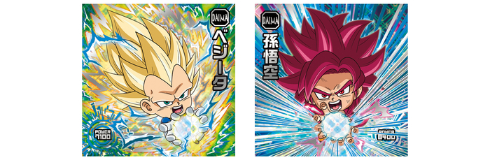 ¡Vegeta y Goku de Dragon Ball DAIMA llegan como pegatinas "Ultimate God Rare"! Estas magníficas pegatinas utilizan estampado holográfico para representar a la perfección los poderosos movimientos desatados en las escenas culminantes de DAIMA.
