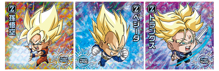 Se incluyen un total de cinco exquisitas pegatinas "God Rare", que recrean a estos guerreros tal como aparecen en la secuencia de apertura de Dragon Ball Z con el verdadero estilo de Super Warrior Sticker.