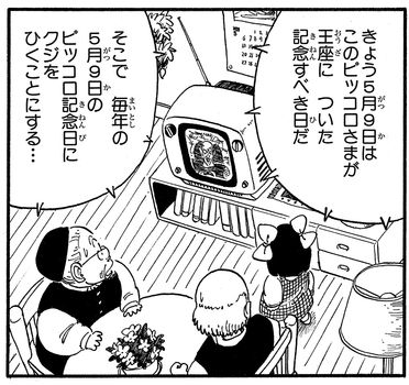 El Día de Conmemoración del Rey Piccolo apareció en Jump Comics "Dragon Ball" Tale 153 como una "fiesta" especial establecida por el propio Great Demon King Piccolo cuando conquistó King Castle y tomó el trono.