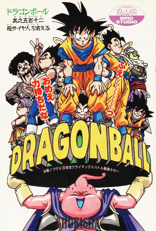 Aquí tenéis una portada divertidísima con el regordete Majin Buu alzando a Goku, sus amigos y su familia. Su diseño es brillante, con un toque pop art y el título de Dragon Ball como base.