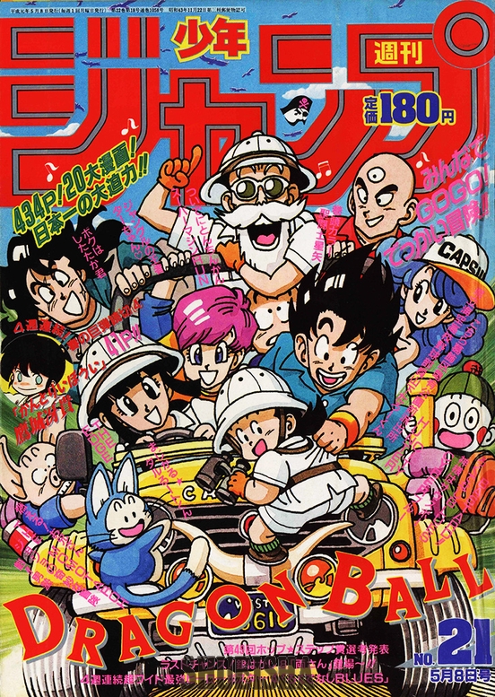 Esta ilustración muestra a Goku y sus amigos vestidos de exploradores, listos para emprender una aventura con el lema "¡Vamos todos! ¡Una gran aventura!". Teniendo en cuenta que en la historia se estaba librando una feroz batalla contra Nappa , ver a Yamcha, Tenshinhan y Chaozu aquí, quienes ya habían perdido la vida, realmente animó a los lectores.
