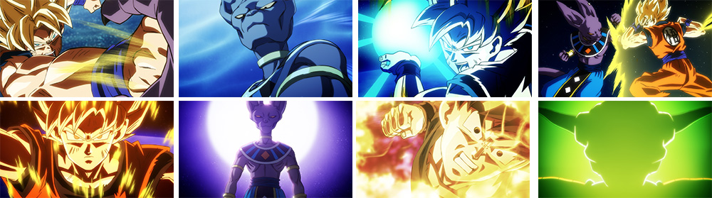 The trailer depicts a raging battle between Son Goku and the God of Destruction Beerus, and breathtaking battle scenes that unfold at a cosmic scale are shown one-after-another.