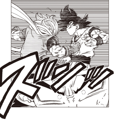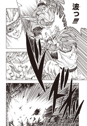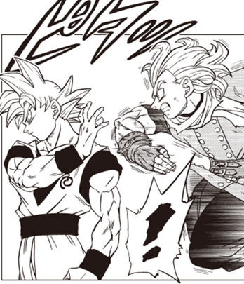 En su forma de Super Saiyan God , Goku es el primero en desafiar a Granolah y su ráfaga de ataques mortales.