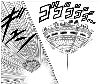 El palacio sufrió graves daños durante la épica batalla de Gotenks y Majin Buu, y se vieron fragmentos de la gran estructura cayendo del cielo. Parecería entonces que no son los componentes individuales, los 'bloques de construcción' si se quiere, del palacio lo que le permite flotar con tanta gracia en el aire.