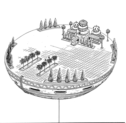 El Kami's Palace flota alto en el cielo, más allá incluso de las nubes. ¿Cómo está flotando? ¿Quién hizo una estructura tan magnífica? El palacio está envuelto en misterio. A menudo se podía encontrar a Kami de pie cerca del borde de esta obra maestra arquitectónica, observando el mundo de abajo.