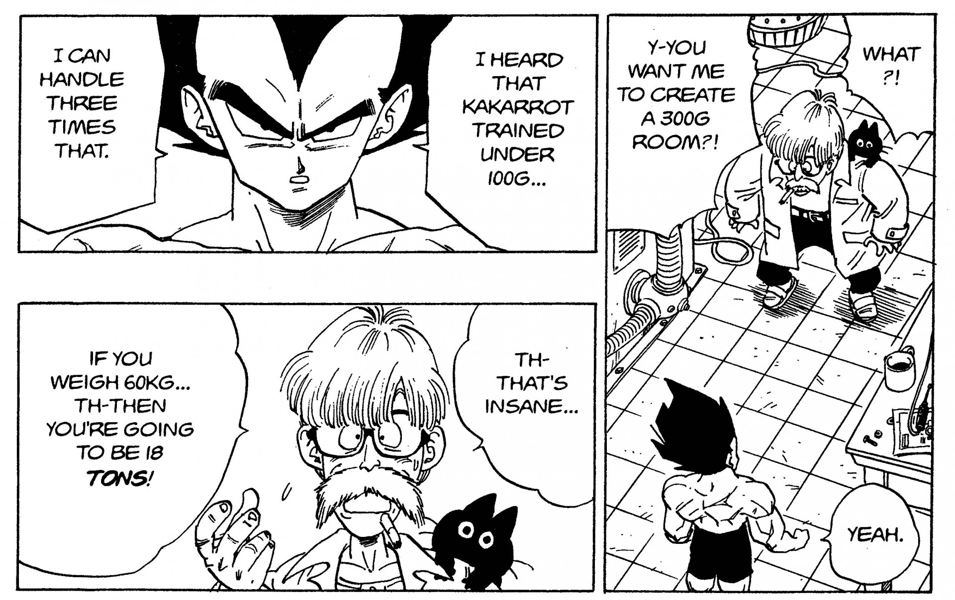 Dr. Brief en estado de shock por la solicitud de Vegeta de una sala de entrenamiento de 300G