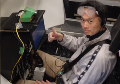 El profesor Hirata se ató al equipo como participante en el experimento. (Imagen cedida por el Prof. Hirata)