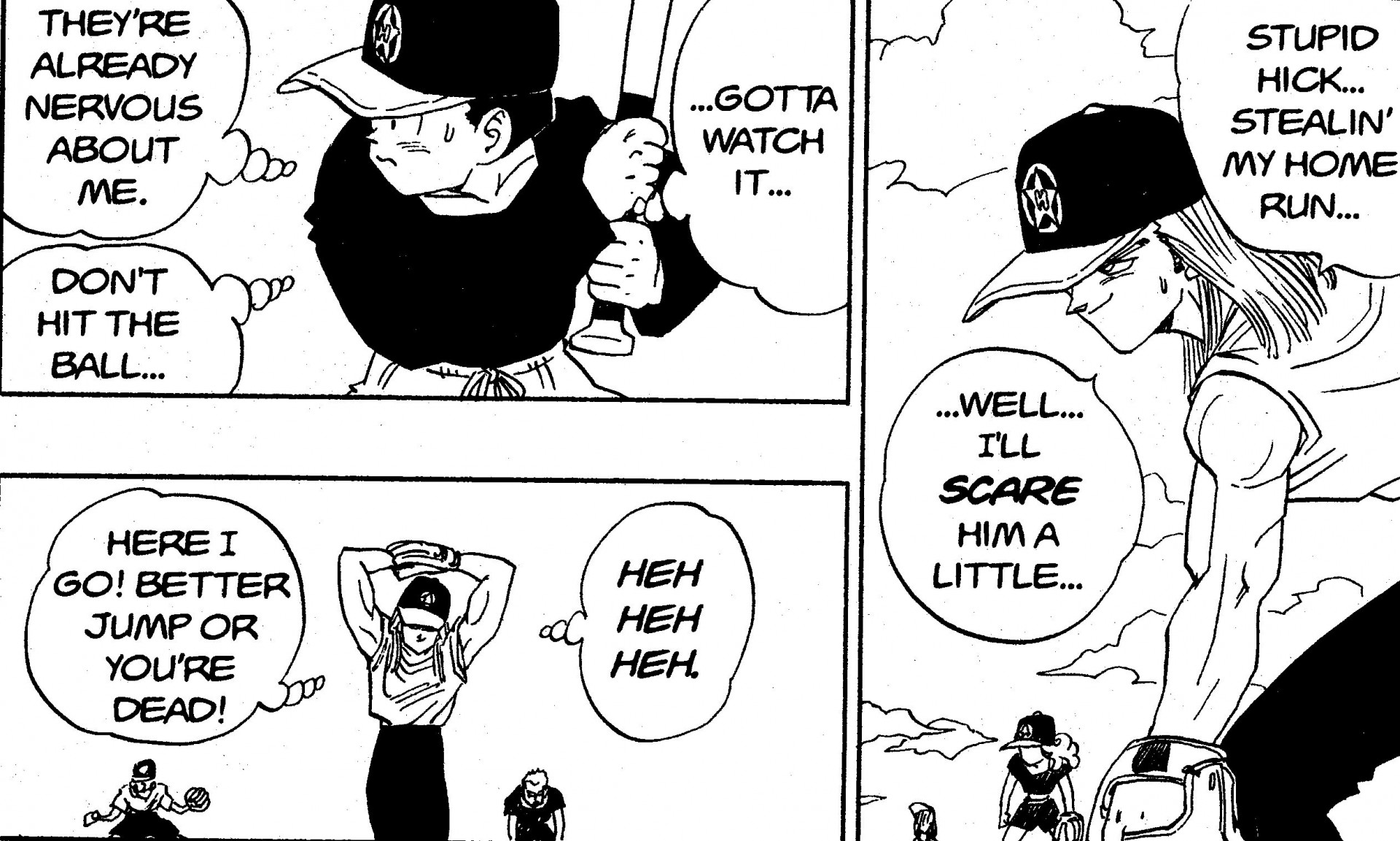 Poco después de comenzar la escuela secundaria, Gohan se encontró en el campo de béisbol por primera vez en la clase de deportes. Asombró a sus compañeros de clase cuando atrapó sin esfuerzo una pelota que parecía un homerun sensacional disparado por su compañero de clase, Shapner.