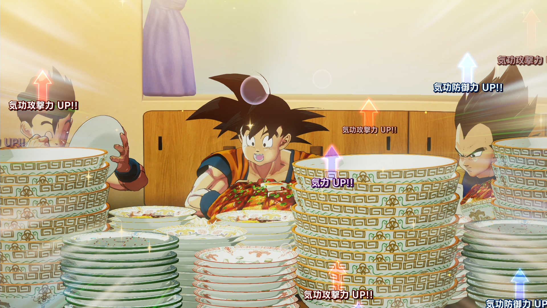 ¡La esperada versión para Nintendo Switch ™ de "Dragon Ball Z: Kakarot" sale a la venta el miércoles 22 de septiembre de 2021! Para celebrarlo, vamos a ver cómo se representaron en el juego las distintas escenas y ubicaciones del manga, dividiendo las cosas en cuatro temas distintos. ¡Para la segunda parte de esta serie de cuatro partes, nos concentraremos en algunos aspectos del juego que el equipo de desarrollo estaba decidido a clavar! ¡Presentaremos algunas escenas de banquetes imperdibles y un minijuego adictivo que está lleno de pequeñas sorpresas!