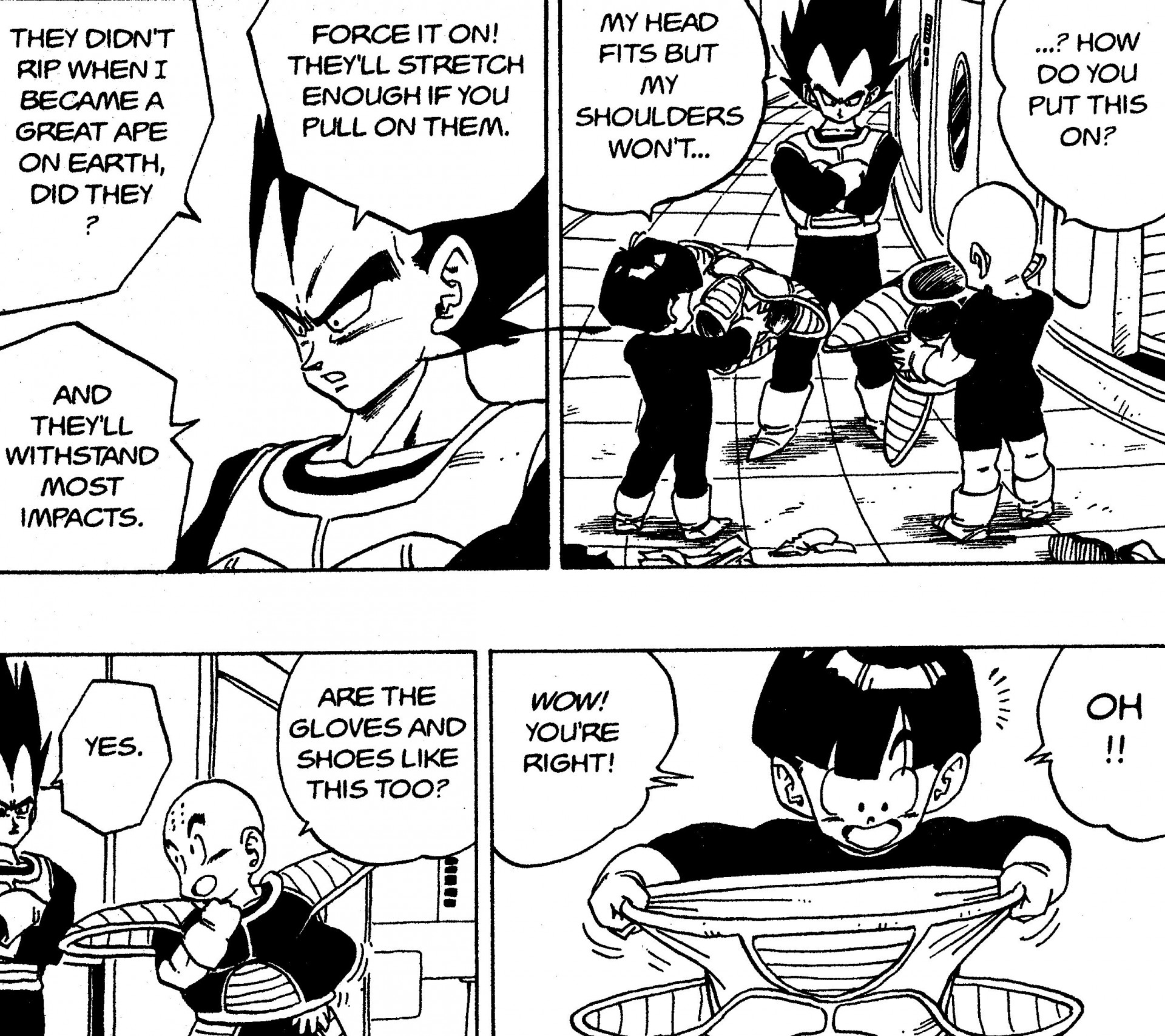 ――Creo que estoy empezando a entender la armadura de batalla de Vegeta. ¡Debe haber sido hecho con poliuretano!