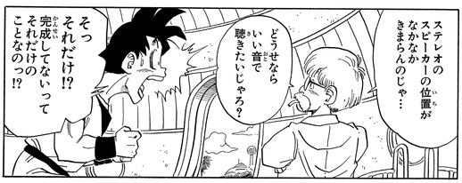 La forma en que Dub insiste en tener una radio en el automóvil recuerda un poco al Dr. Brief reflexionando sobre la posición perfecta para instalar los altavoces en la nave espacial que estaba reconstruyendo para Goku.