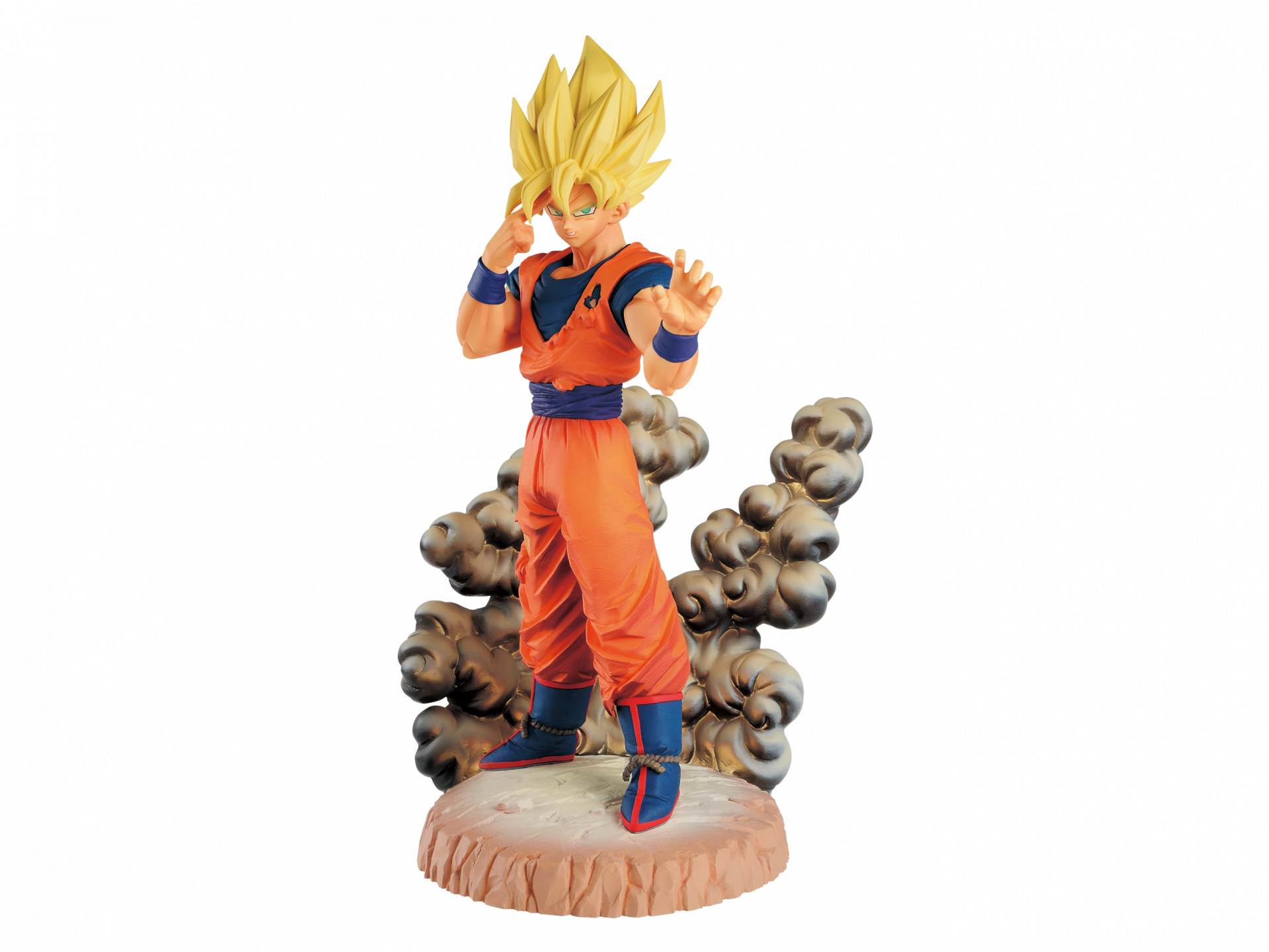 Para esta increíble nueva figura de Goku, han optado por una recreación perfecta del legendario Saiyan mientras salva al mundo de una Cell que explota. ¡El efecto de humo que se eleva desde detrás de Goku hecho de material semitranslúcido crea una sensación de atmósfera que seguramente te transportará directamente al medio de la caótica batalla de Goku y Cell!