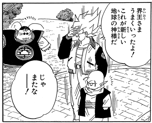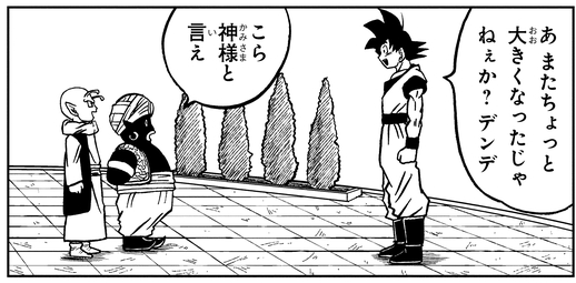 Unos años después de la batalla contra Cell, las mejillas regordetas de Dende se han ido y el joven Guardián está empezando a parecer mucho más adulto.
