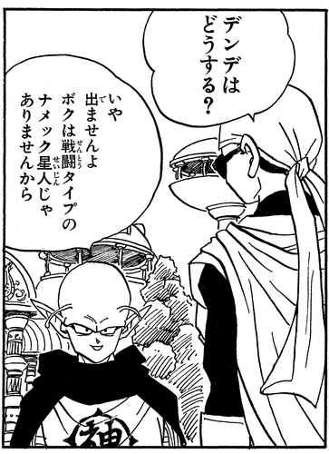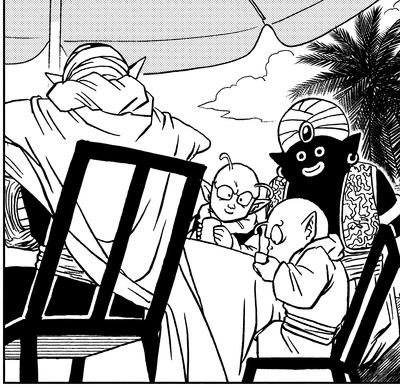 ¡Dende vino al rescate una vez más en el arco del Prisionero de la Patrulla Galáctica cuando curó a Goku, que había sido derrotado por Moro, que consumía planetas! Además, ¡también se había hecho responsable de la seguridad de un joven Namekian llamado Esca!