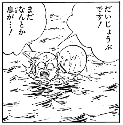 No mucho después, Dende demuestra una vez más su valor como aliado y amigo cuando recupera a Krillin, que había sido lanzado al mar después de ser golpeado por Frieza en su segunda forma. ¡¡Sobresaliente!!