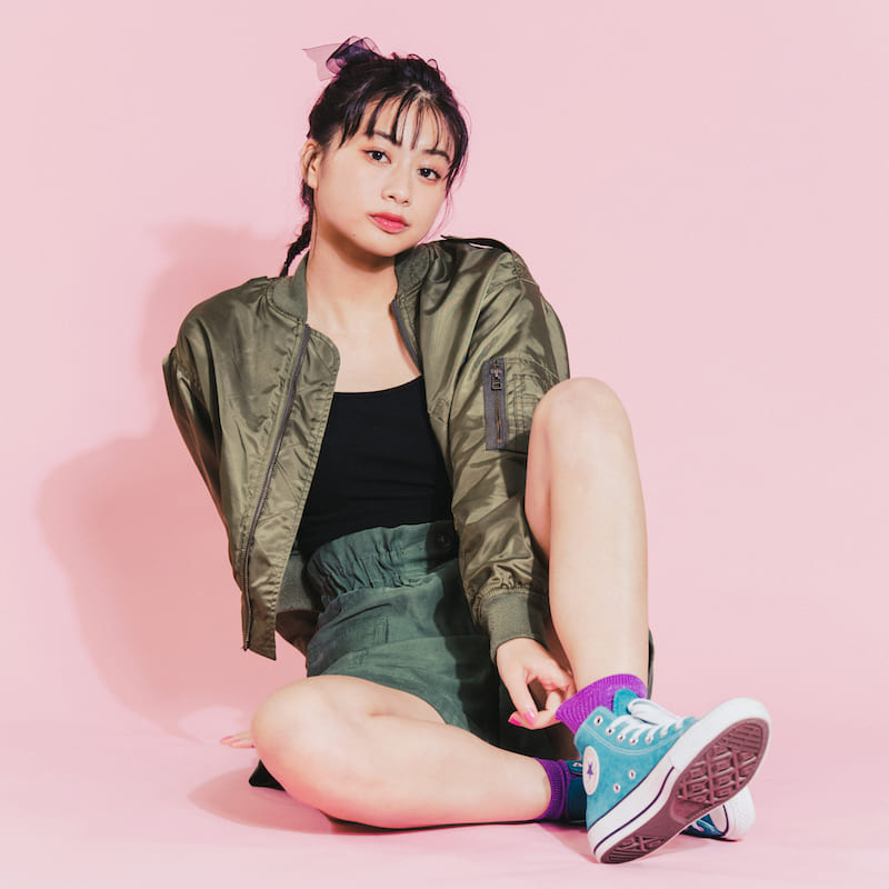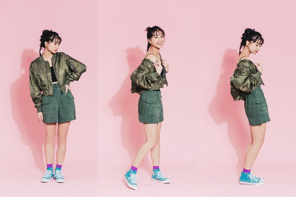 ¡Me encanta el contraste entre la chaqueta bomber de hombre y los elegantes calcetines y zapatos! Tiendo a usar mucha ropa de estilo marimacho en mi vida privada, ¡así que este estilo era mi favorito personal! ♡