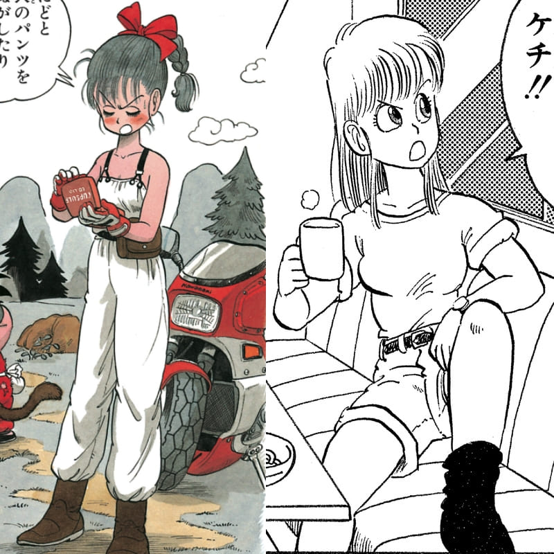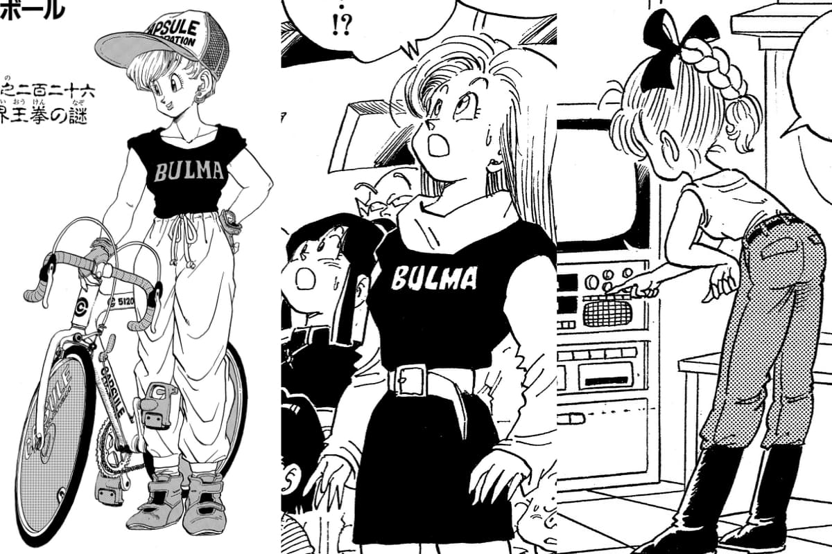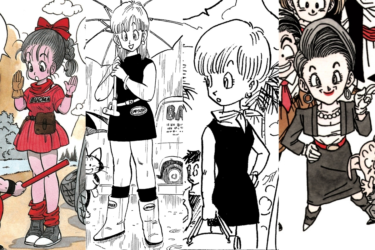 Cuando Bulma apareció por primera vez en el manga tenía solo 16 años, pero en el momento de su última aparición al final de la serie tenía 51 (según la línea de tiempo en Dragon Ball Daizenshuu Akira Toriyama World Volumen 7). ¡Creo que es fascinante ver los cambios que sufrió su estilo a medida que crecía!