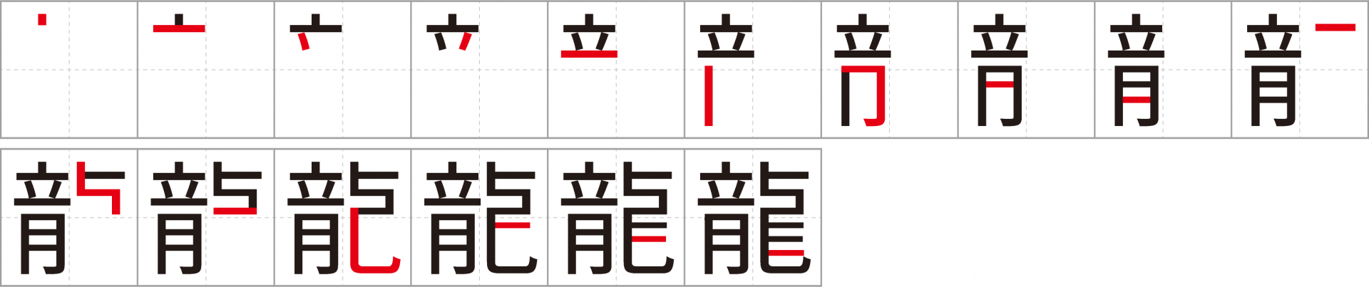 Este kanji representa la parte "Dragón" del título de Dragon Ball . En el juego de mesa japonés shogi (similar al ajedrez), este personaje se usa en la parte posterior de la pieza más fuerte del juego, el "Hisha" (torre / castillo en versiones en inglés). Este kanji tiene una imagen muy fuerte y poderosa, por lo que a menudo se usa para significar fuerza.