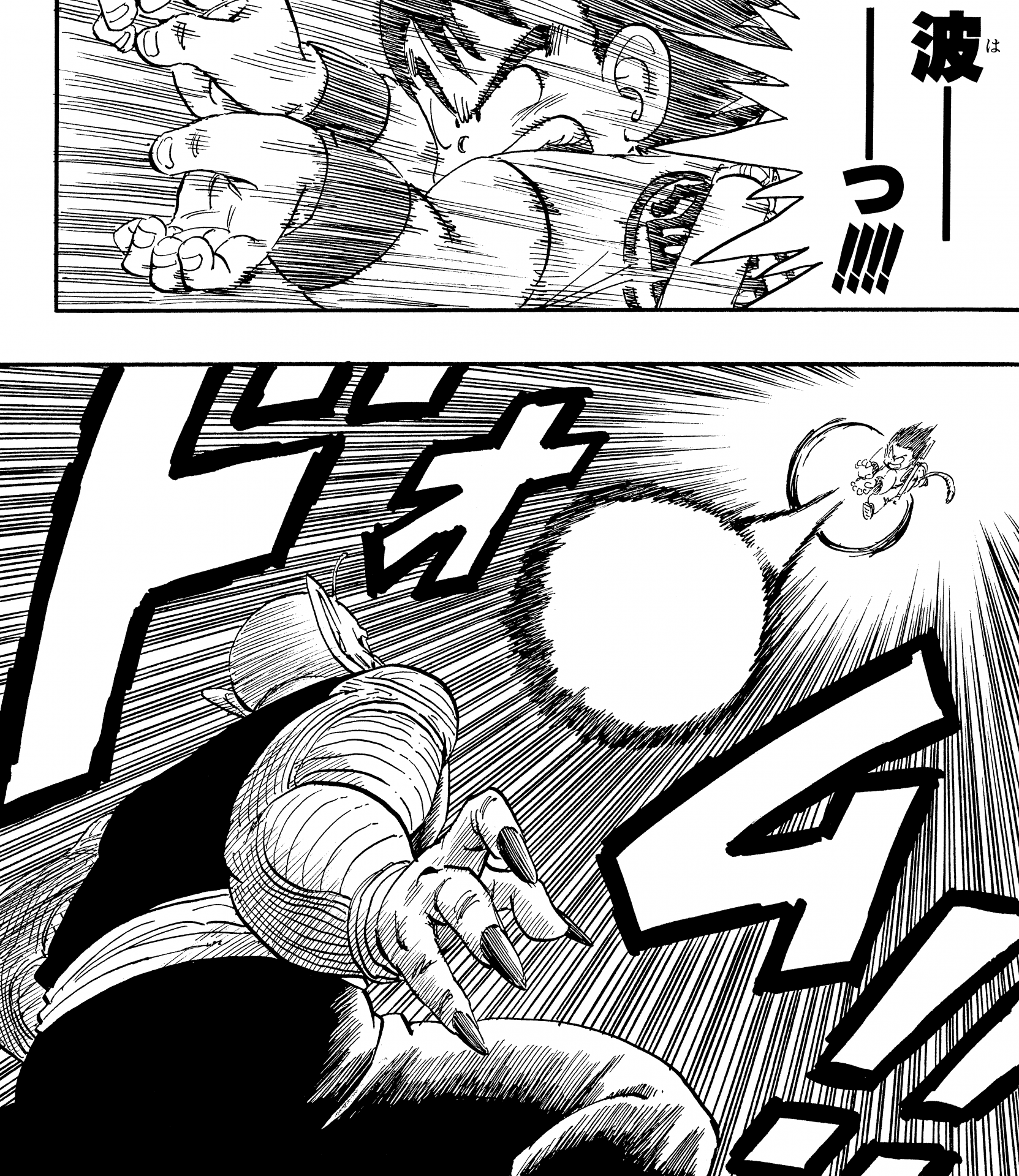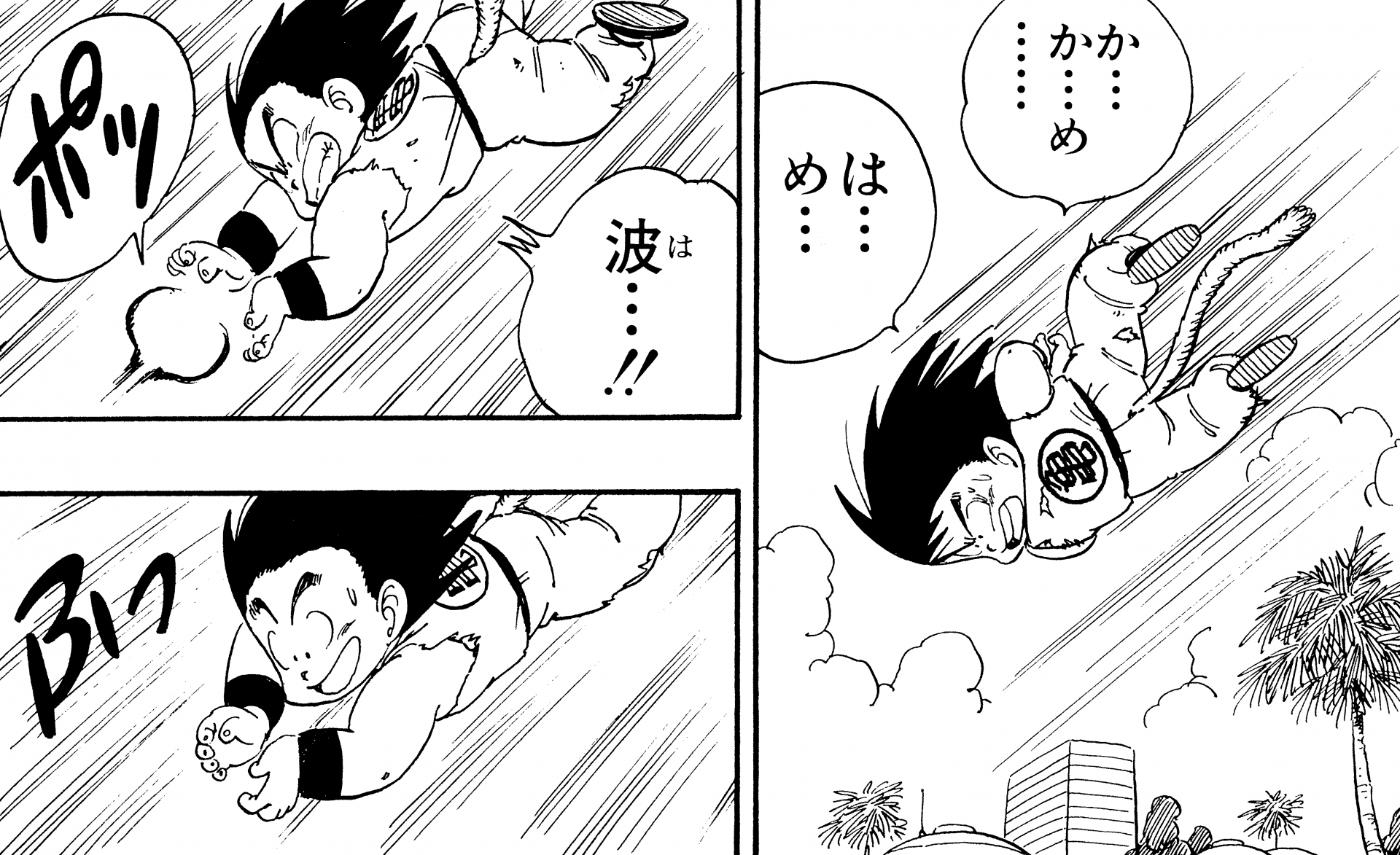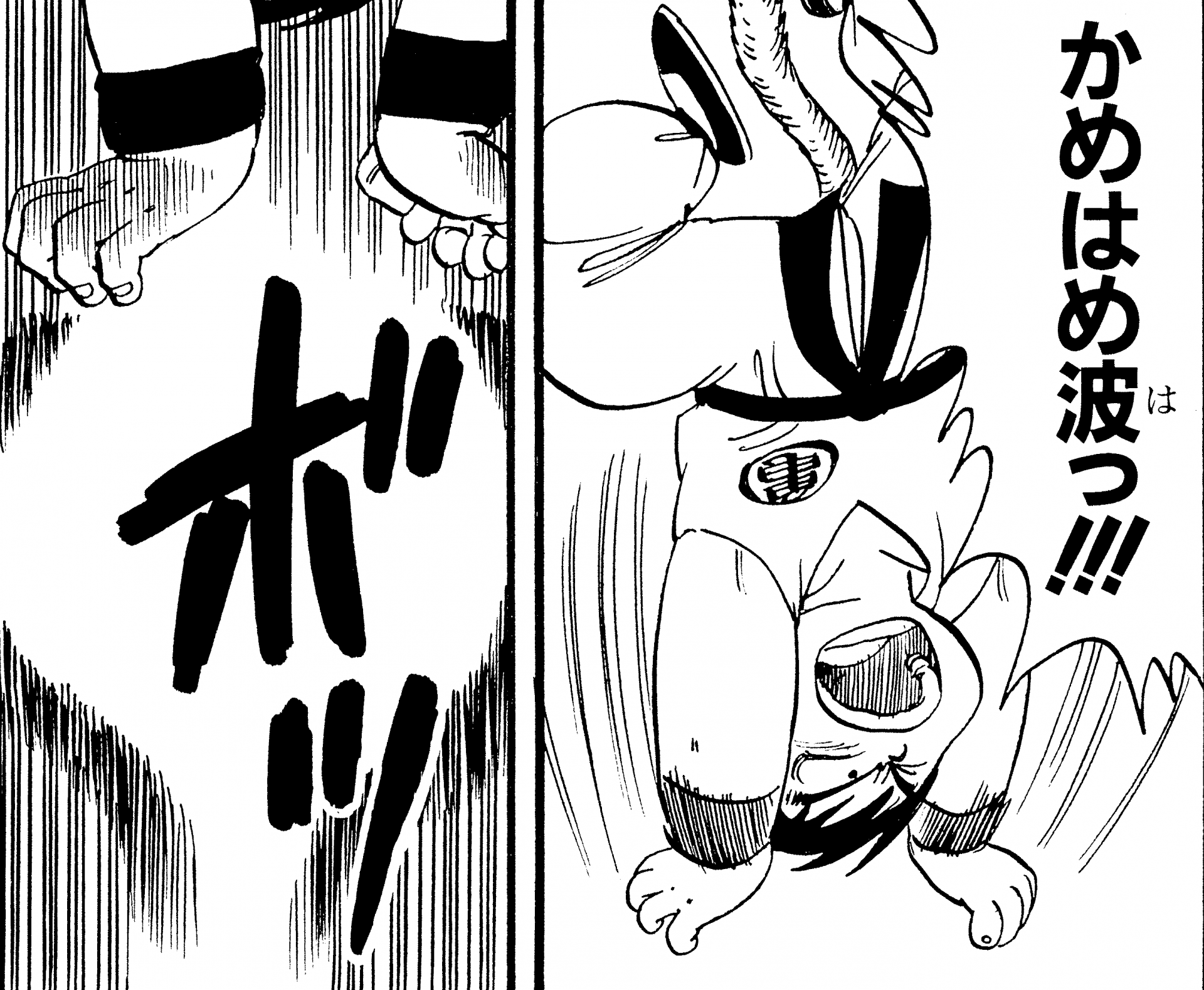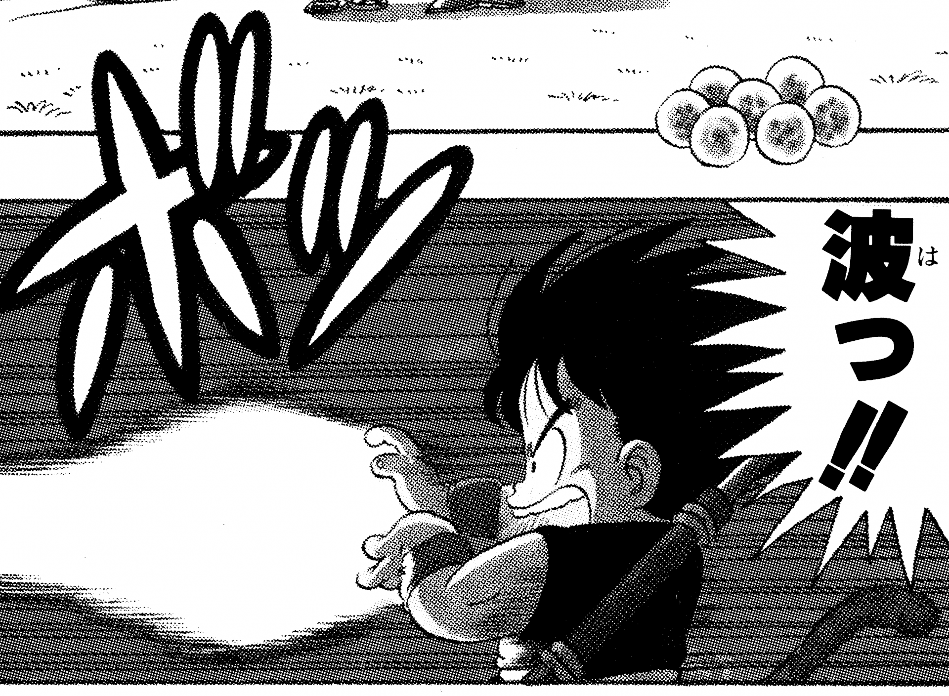 ・ Cuento 270, página 5: Goku dispara un Kamehameha durante su entrenamiento en la nave espacial con destino al Planet Namek.