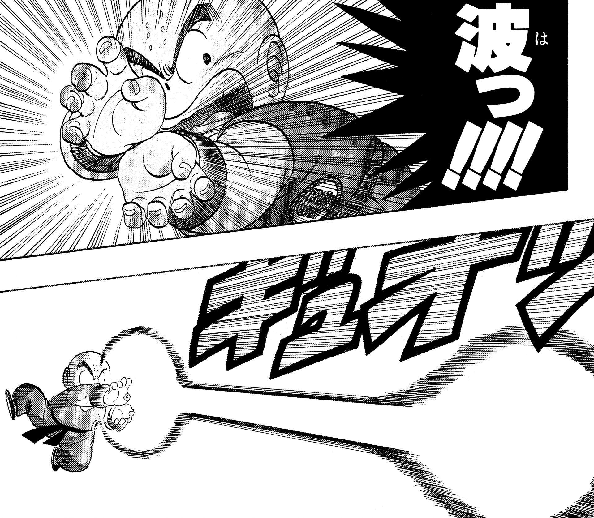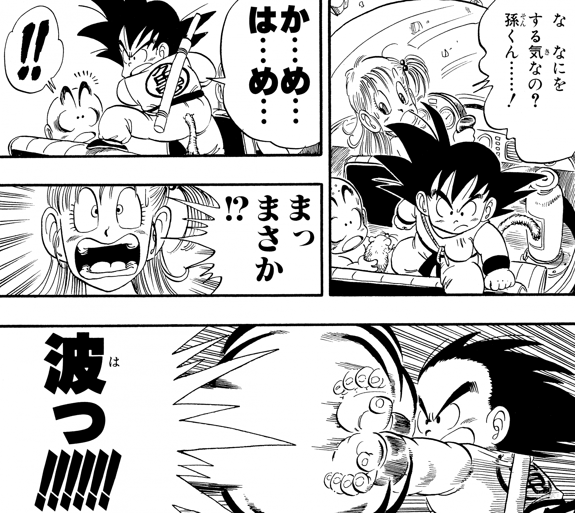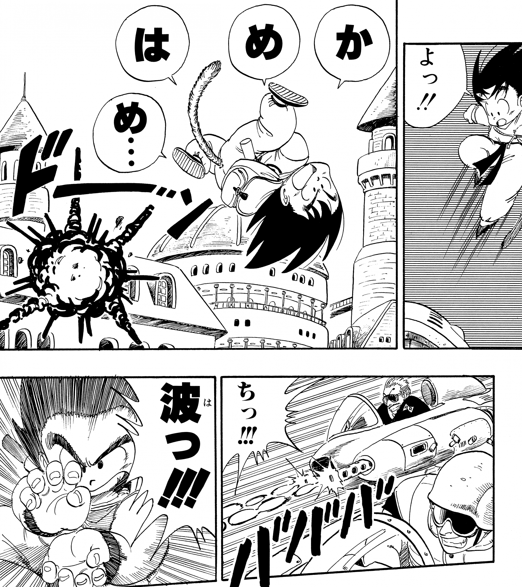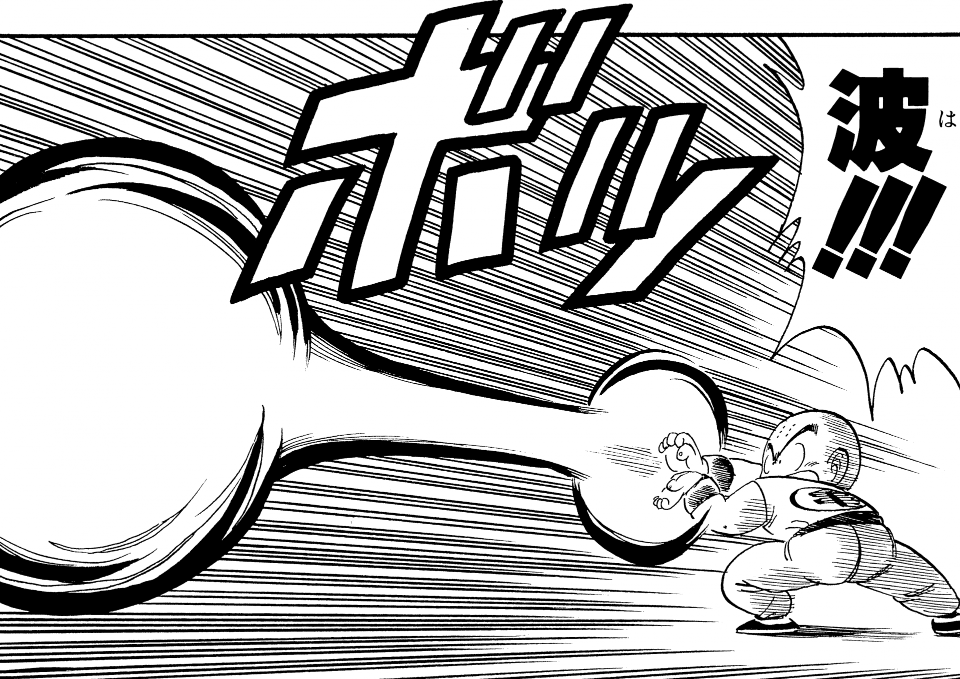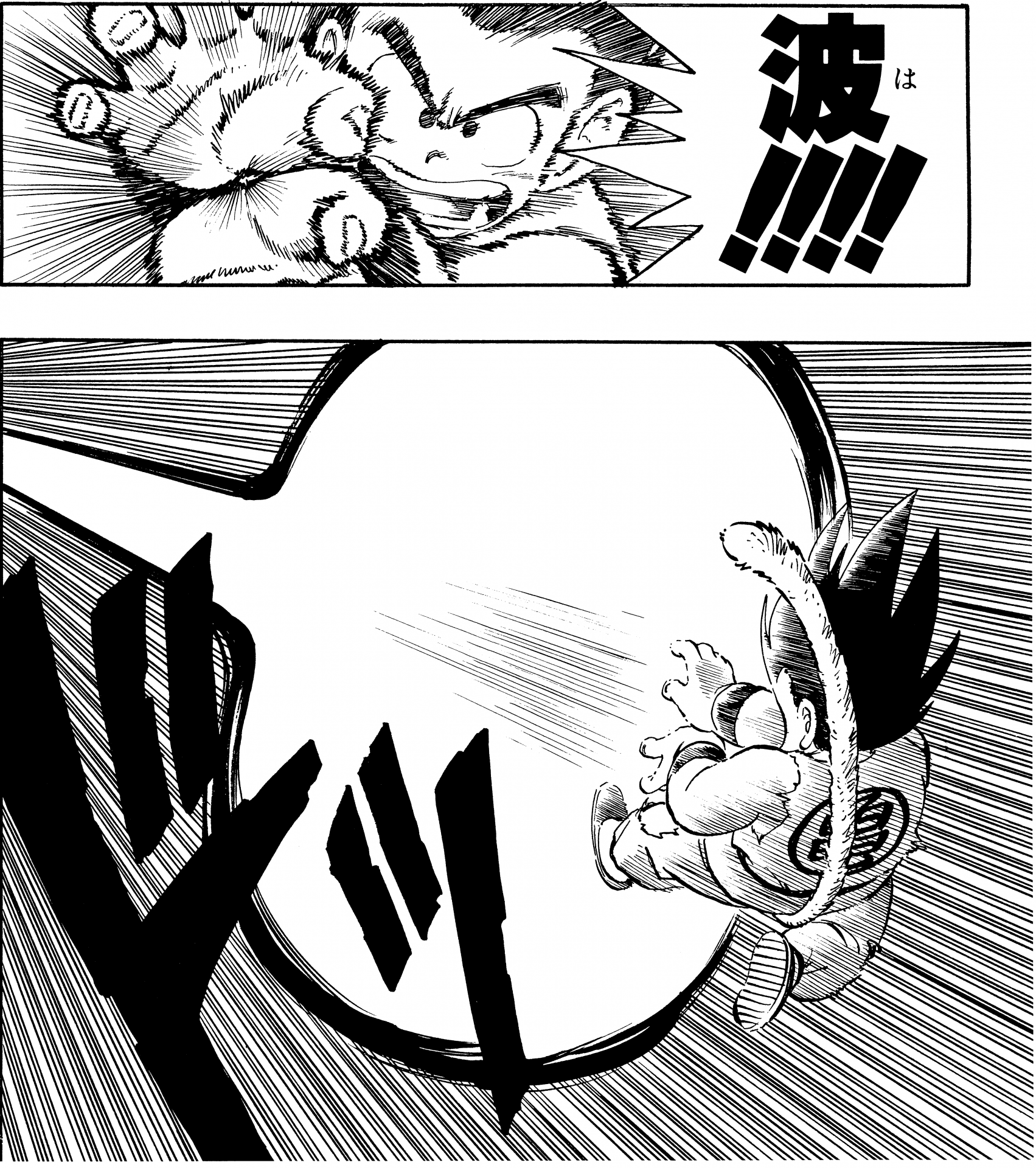 ・ Cuento 270, página 5: Goku dispara un Kamehameha durante su entrenamiento en la nave espacial con destino al Planet Namek.