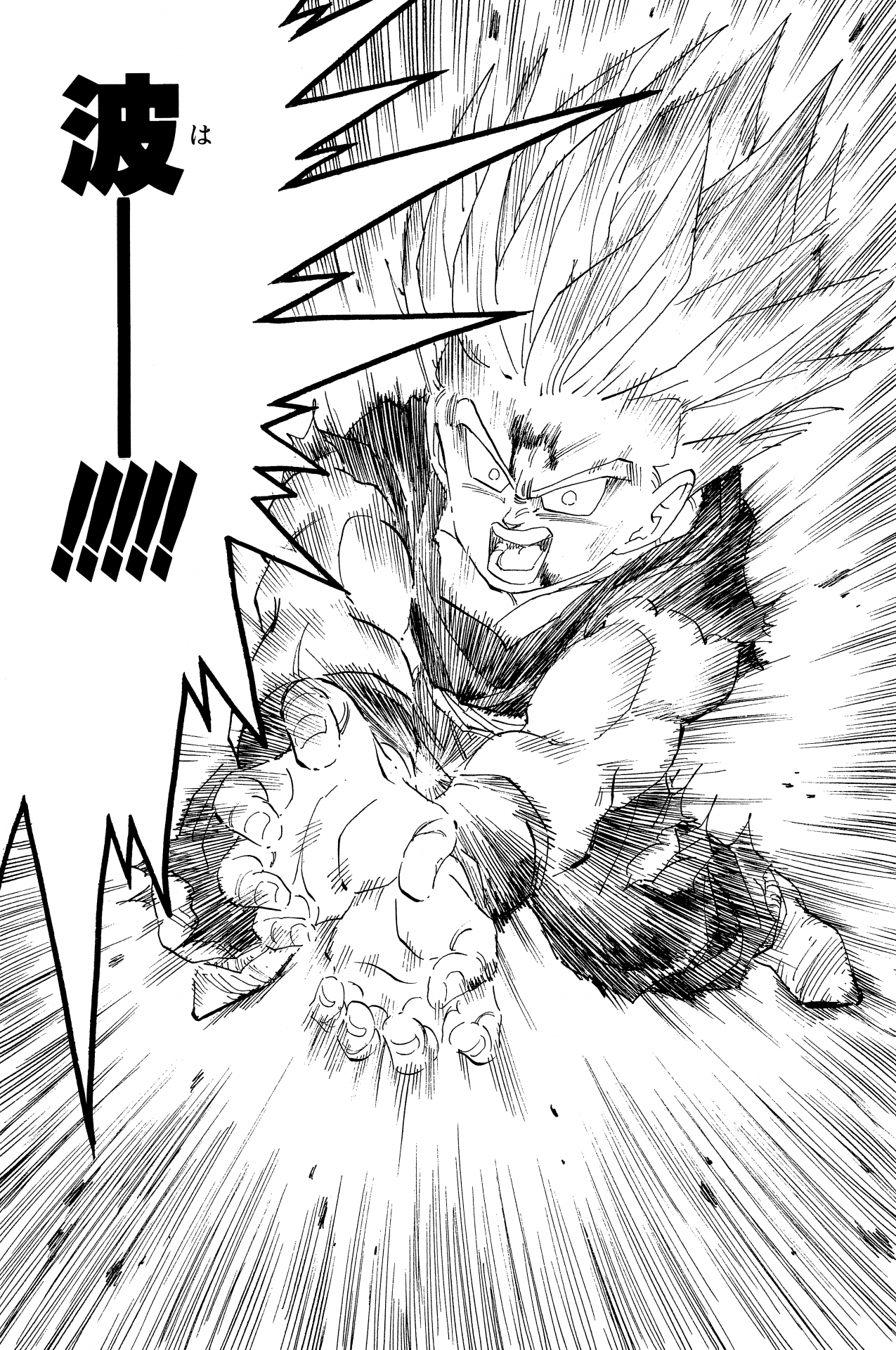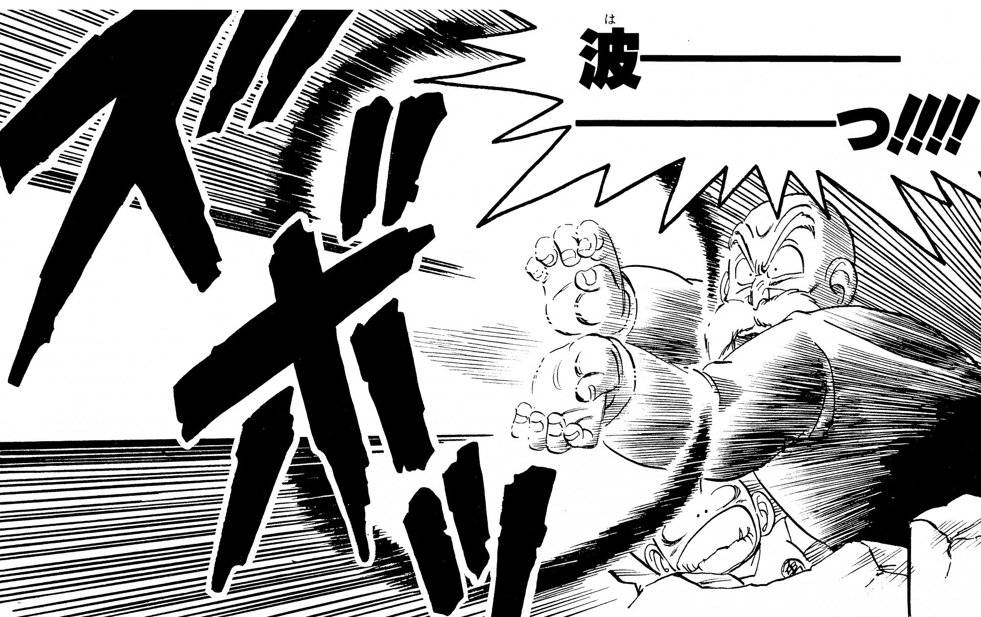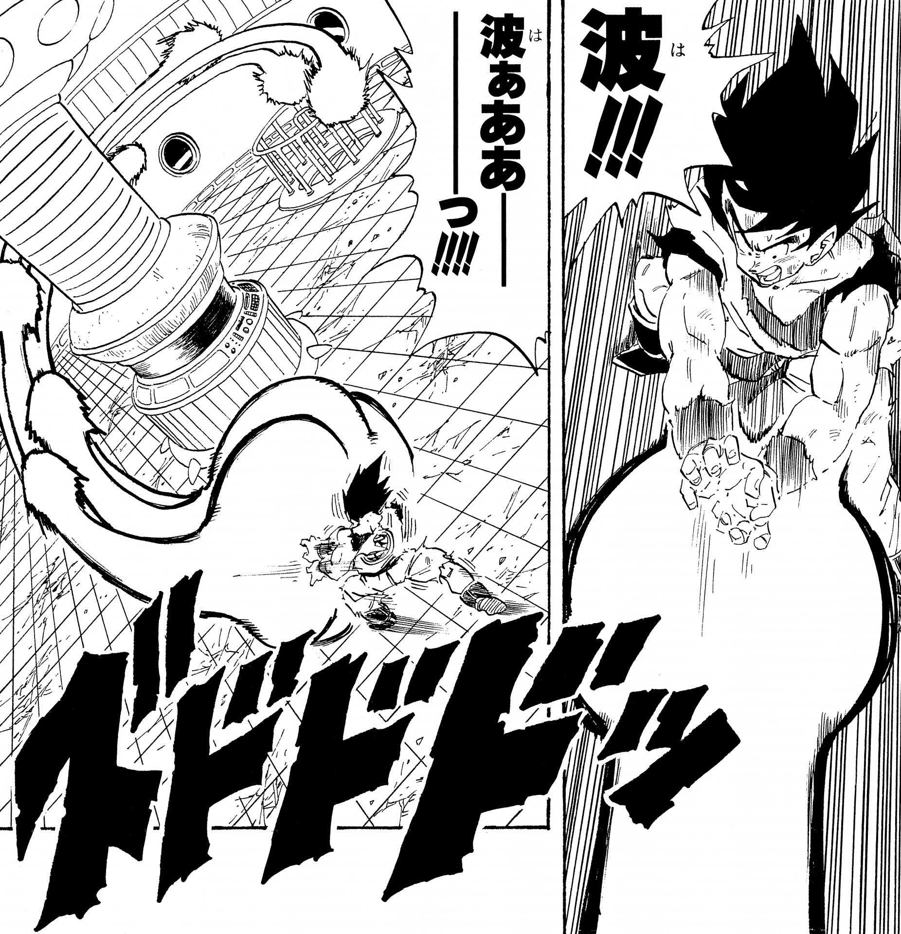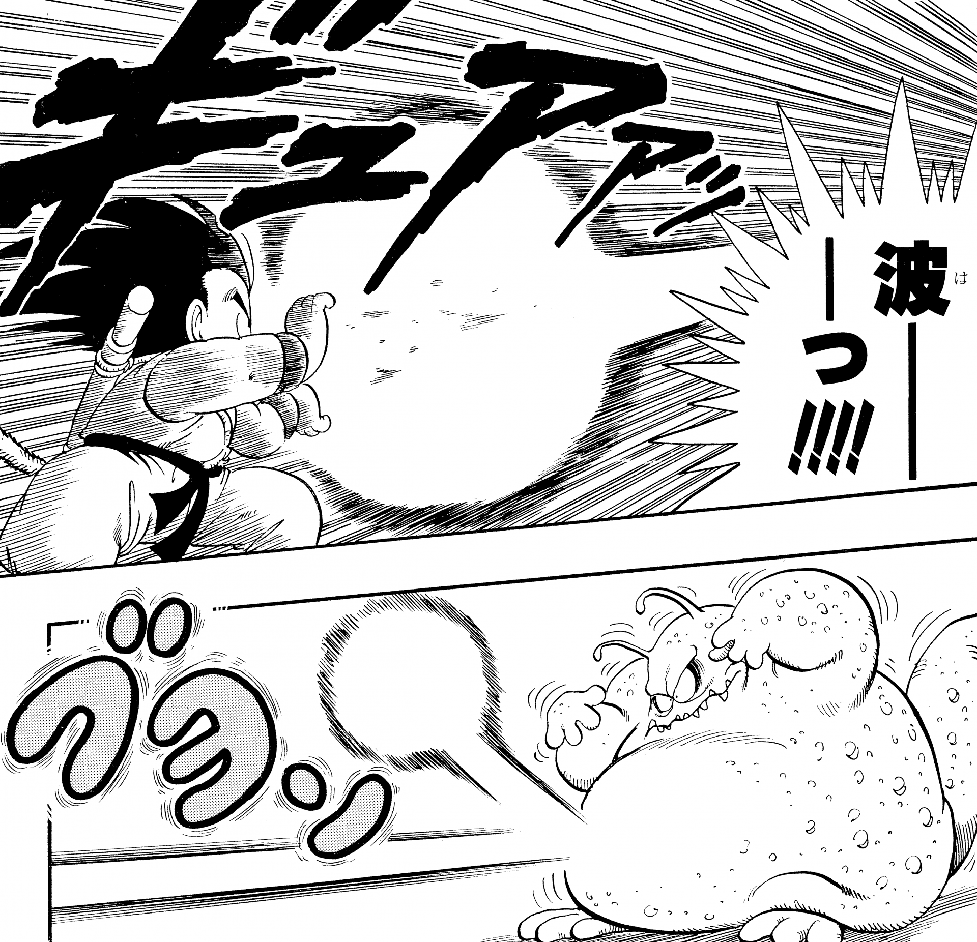 ・ Cuento 270, página 5: Goku dispara un Kamehameha durante su entrenamiento en la nave espacial con destino al Planet Namek.