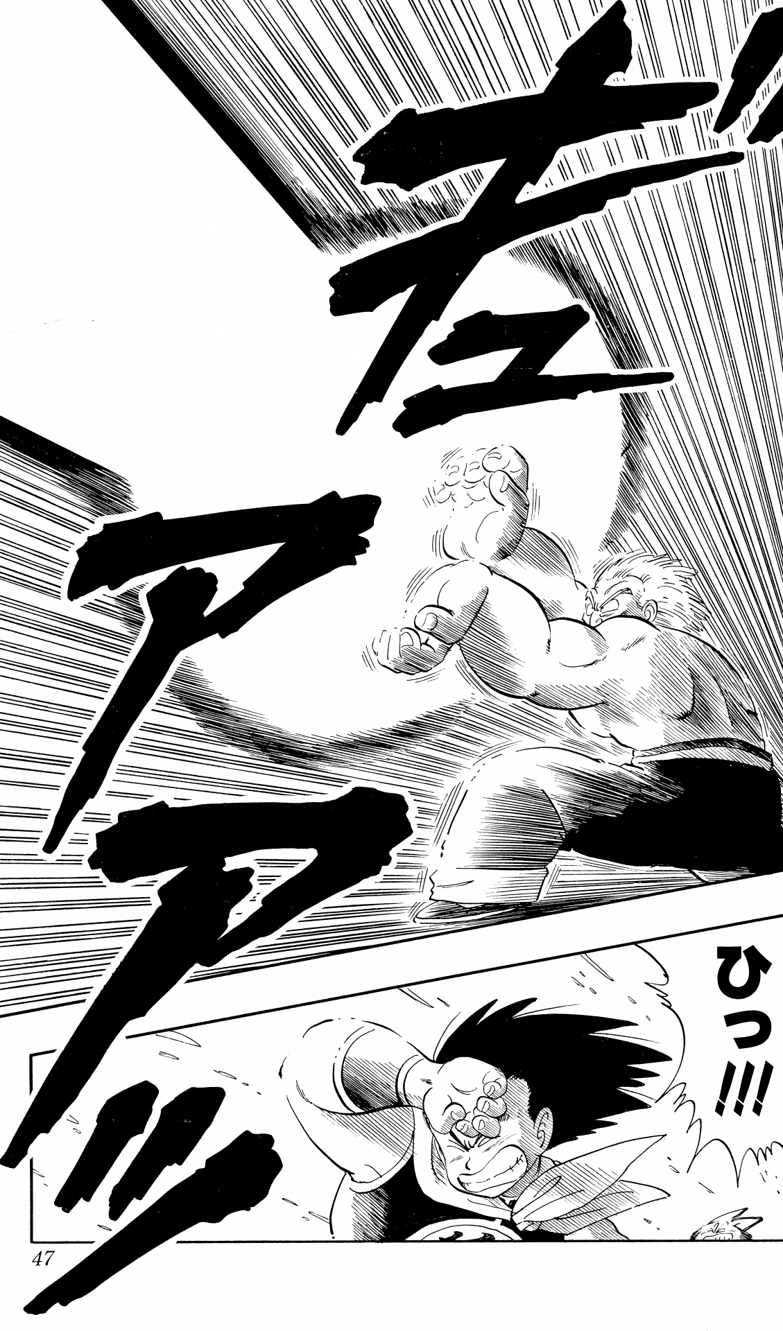 ・ Cuento 107, página 5: Goku dispara al abuelo Gohan en el Uranai Baba's Palace.