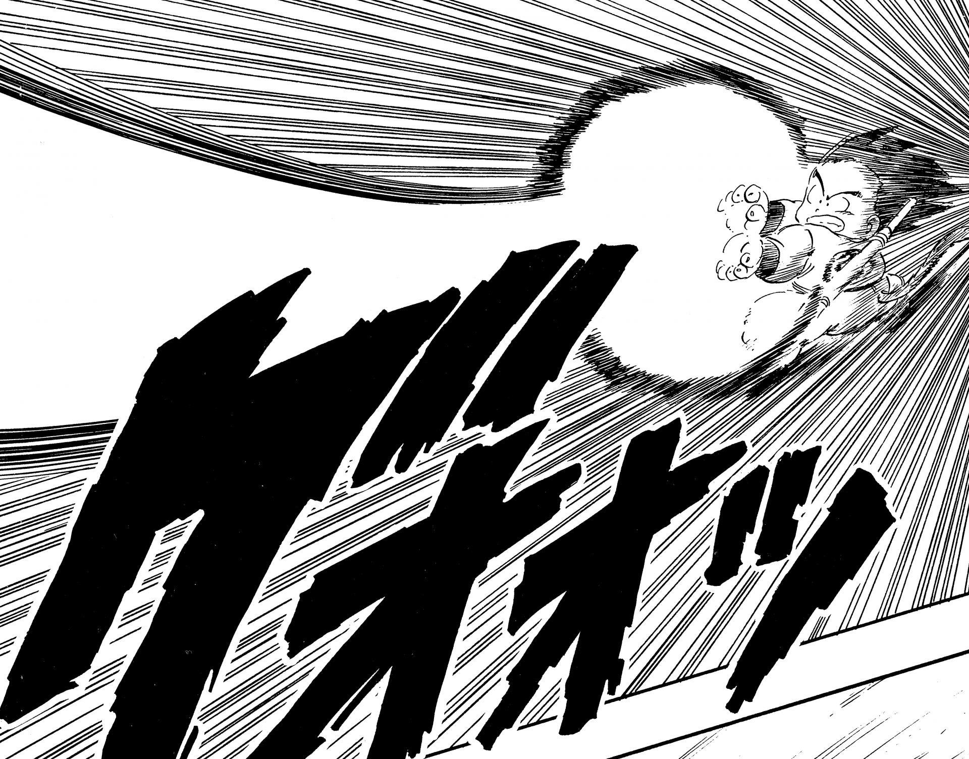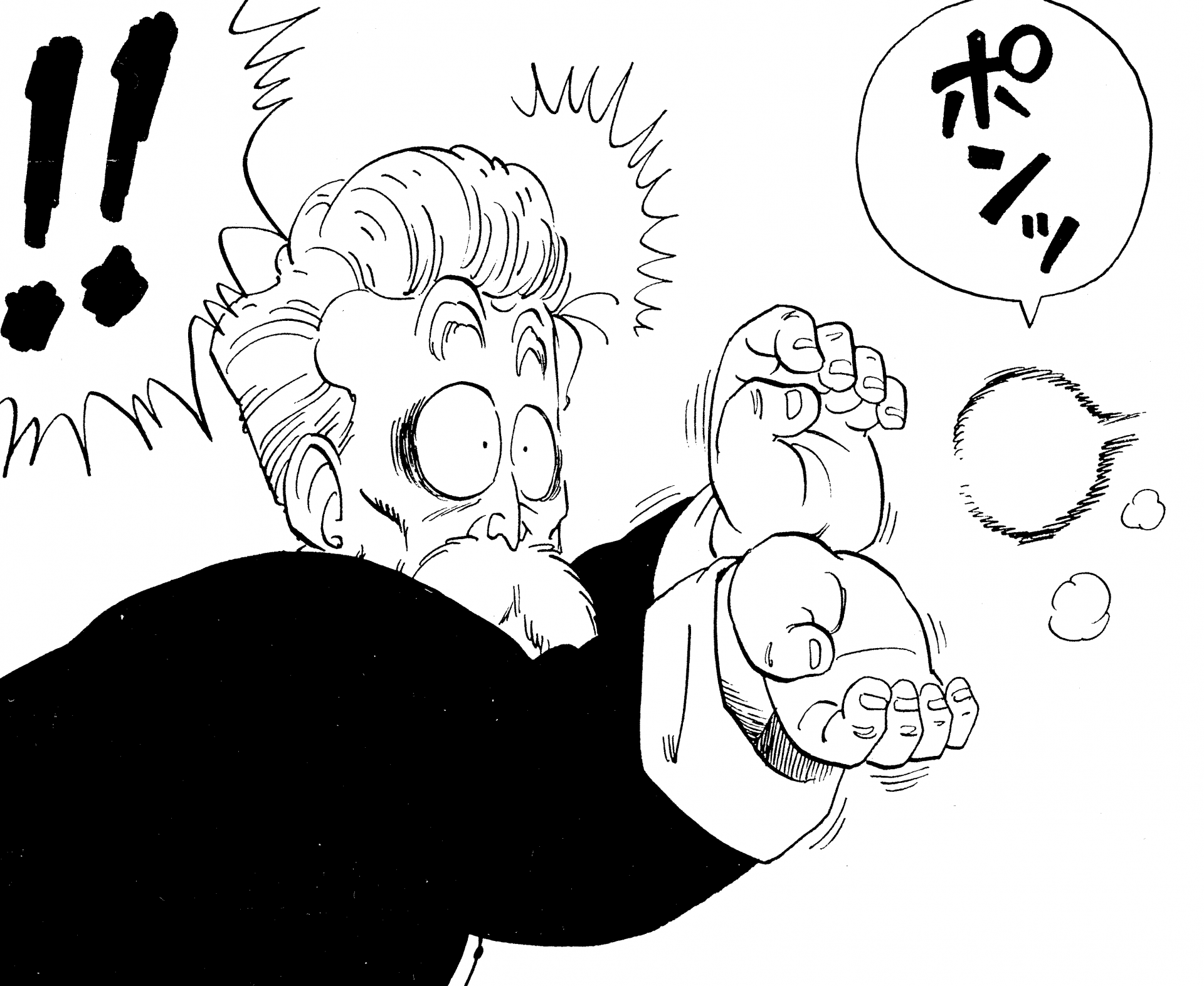 ・ Cuento 106, página 13: El abuelo Gohan dispara a Goku en el Uranai Baba's Palace.
