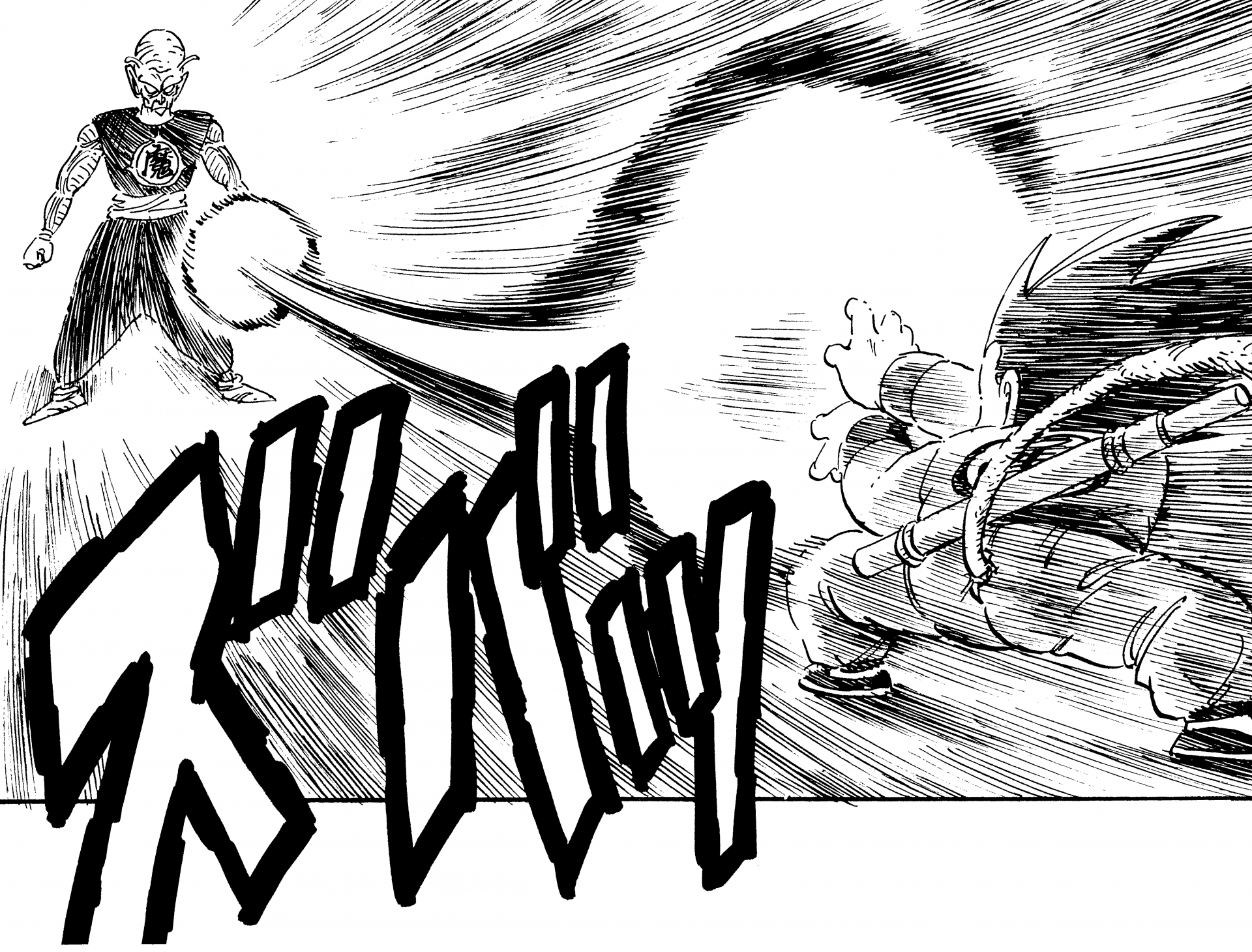 ・ Cuento 157, página 9: Goku dispara al Great Demon King Piccolo en King Castle.