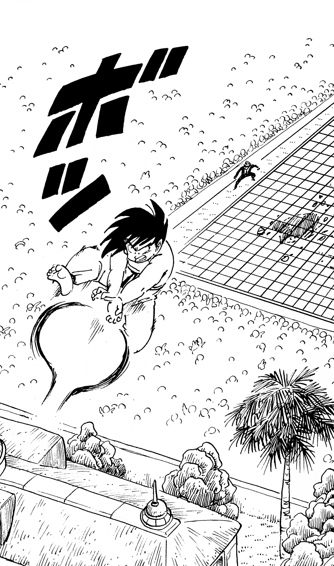 ・ Cuento 134, página 8: Goku dispara un Kamehameha para reducir la velocidad mientras cae del aire en la gran final del Tenkaichi Budokai.