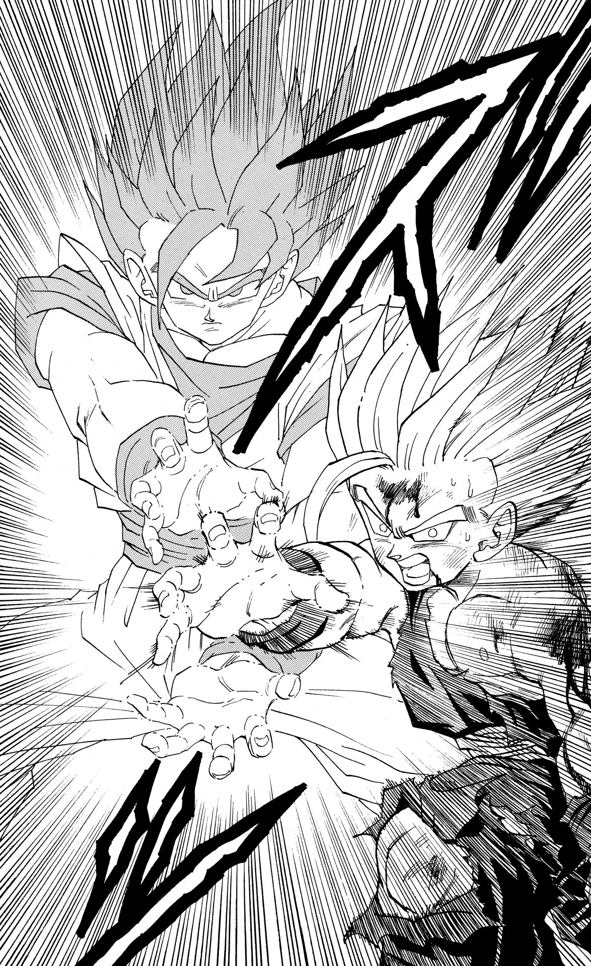 ・ Cuento 410, página 12: Gohan dispara su propio Kamehameha en respuesta al Kamehameha de Cell .