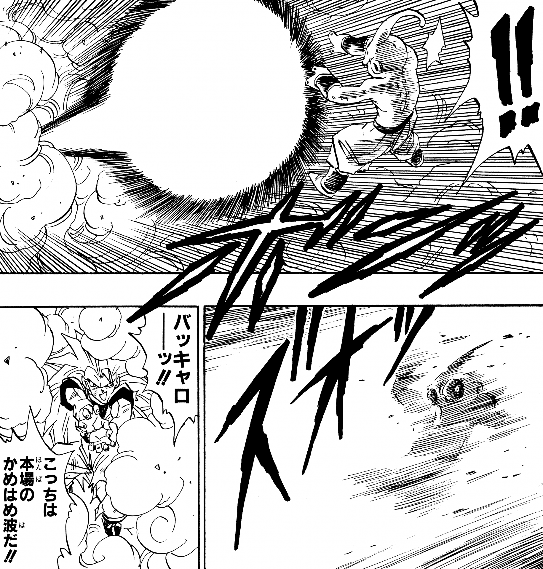 ・ Cuento 460, página 5: Gohan dispara a la esfera que contiene a Buu. Hasta ahora, ha habido un puñado de Kamehameha 'silenciosos' que no fueron acompañados por el grito característico, pero de hecho todos los casos de aquí en adelante son Kamehameha silenciosos.