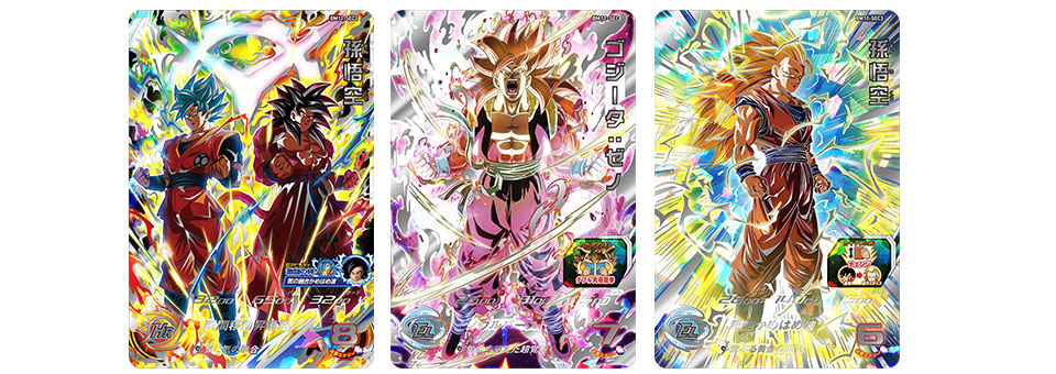Para las cartas de la serie original tenemos "Prince of Destruction" Vegeta, Angel Halo Super Saiyan 2 Goku, y haciendo su primera aparición en Super Dragon Ball Heroes, Kame School Uniform Goku.