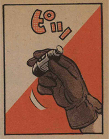 Esta imagen de un niño mono sonriendo salvajemente y una joven elegante montada en una moto aeroespacial futurista fue un aspecto nuevo y fresco que seguramente causó una gran impresión en los lectores.
